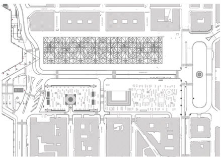 The square is a dynamic and fluid place but often a contested space amongdifferent users, including numerous homeless individuals seeking refuge in thestation's spaces designed by Dominique Perrault.